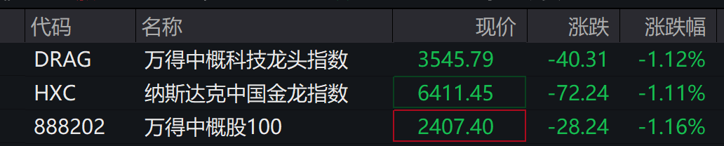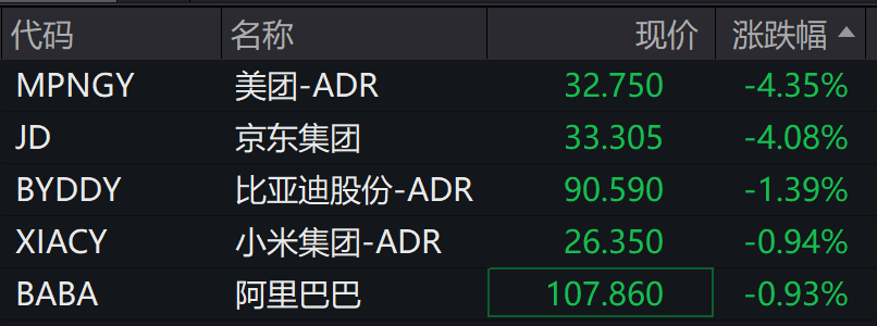 中概股也受到影响。截至发稿,纳斯达克中国金龙指数跌超1%。美团、京东集团均跌超4%。