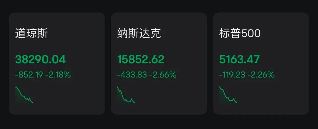 美股跌幅还在扩大。截至发稿,纳指、标普500、道指三大指数均跌超2%。